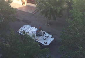 Ոստիկանականները զրահամեքենաներով փակել են ոստիկանության Էրեբունու բաժին տանող ճանապարհը։ Լրագրողներին էլ արգելում են նկարահանումներ կատարել: