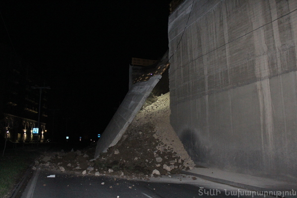 Երևանի Սարալանջի պողոտայում բետոնե հենապատը փլուզվել է և փակել երթևեկելի հատվածը (լուսանկար)