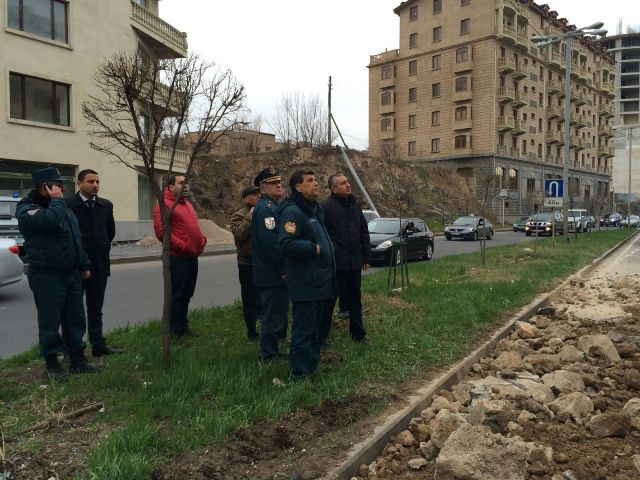 Դեպքի վայրում են գտնվել ՀՀ ԱԻ նախարար Ա. Երիցյանը, ՓԾ տնօրեն փ/ծ գեներալ-լեյտենանտ Ս. Ազարյանը, ՓԾ օրվա պատասխանատու փ/ծ գնդապետ Հ. Խանգելդյանը¸ ԵՓՎ պետի տեղակալներ փ/ծ փոխգնդապետ Է. Սահակյանը¸ Արաբկիր համայնքային բաժնի պետ փ/ծ փոխգնդապետ Ա. Ջումայանը¸ Արաբկիր վարչական շրջանի ղեկավար Հ. Վարդանյանը և աշխատակազմի ղեկավար Խաչատրյանը: Փրկարարները սահմանազատել են Ազատության պողոտայի թիվ 1/21 շենքի հարակից վտանգավոր հատվածը: