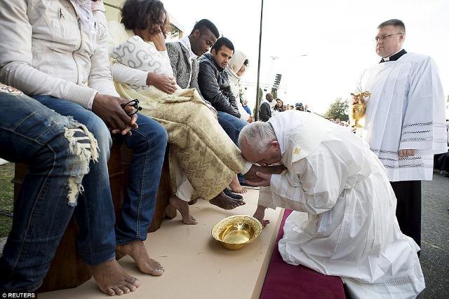 Հռոմի պապ Ֆրանցիսկոսն Իտալիայի փախստականների ընդունման կենտրոնում ժամերգություն է անցկացրել «Խորհրդավոր ընթրիքի» երեկոյան։ Պոնտիֆիկոսը լվացել է 11 փախստականի և կենտրոնի կամավոր աշխատակիցներից մեկի ոտքերը։