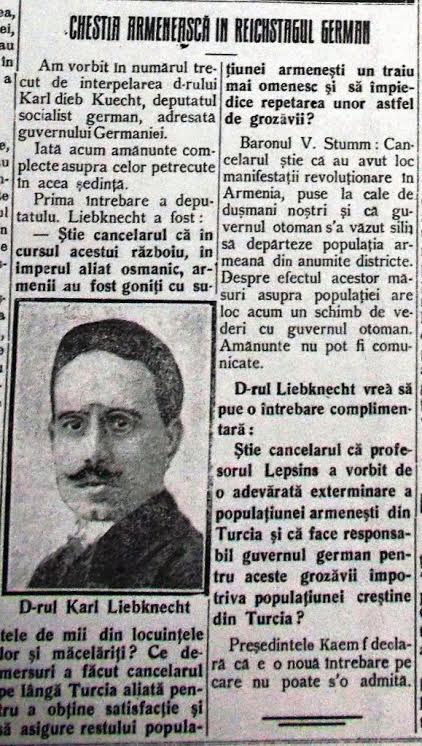 Հայերի հանդեպ կատարված ոճրագործությունների փաստերը թերթում ներկայացվում էին ամեն օր, որոնց արձագանքը ոտքի էր կանգնեցրել եվրոպական հասարակությանը: Բերվում է գերմանացի սոցիալիստ պատգամավոր Կարլ Լիբկնեխտի օրինակը, որը «Հայկական հարցը» բարձրացրել էր Ռայխստագում: Ներկայացվել են նաև Կոնստանդնապոլսում ԱՄՆ դեսպան Հենրի Մորգենթաուի վկայությունները հայերի բնաջնջման վերաբերյալ: