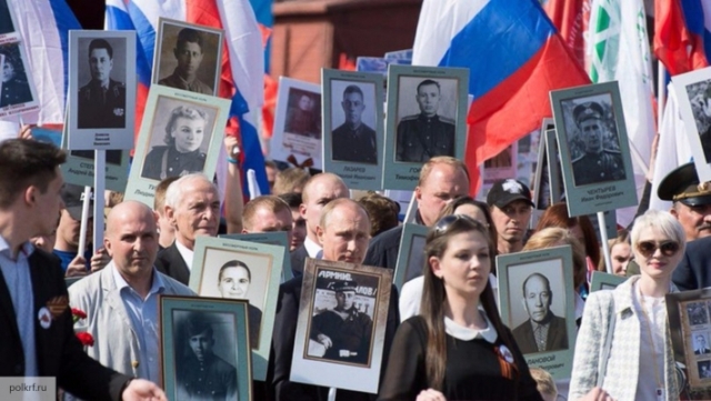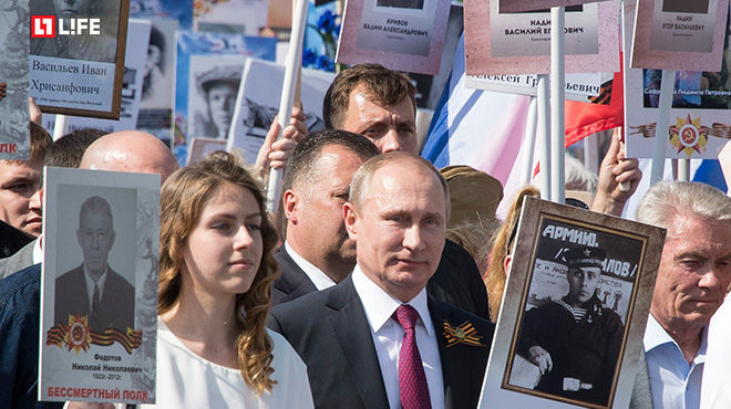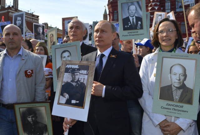 ՌԴ նախագահ Վլադիմիր Պուտինը Մոսկվայի Կարմիր հրապարակում մասնակցել է «Անմահ գունդ» ակցիային իր հոր՝ ճակատային զինվորական Վլադիմիր Սպիրիդոնովիչի լուսանկարով։ Շքերթը մեկնարկել է ՌԴ մայրաքաղաքի Լենինգրադյան պողոտայից՝ Տվերսկի ուղղությամբ։