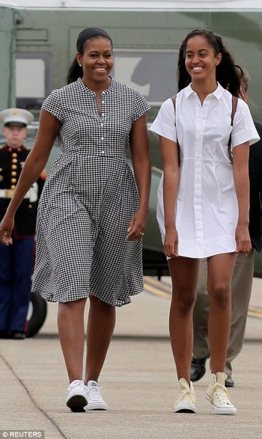 Ինքնաթիռից իջնելիս Բարաք Օբաման դիմել է ավագ դստերը, ով, սակայն,նրան բռնազբոսիկ և հիմար ժպիտով է պատասխանել։ Մալիան ողջ ընթացքում եղել է իր մոր՝ Միշել Օբամայի հետ. նրանք համապատասխանեցրել էին իրենց հագուստներն ու մարզական կոշիկները։
