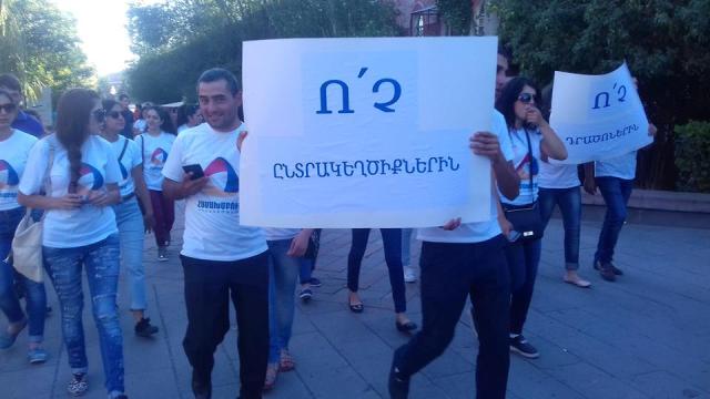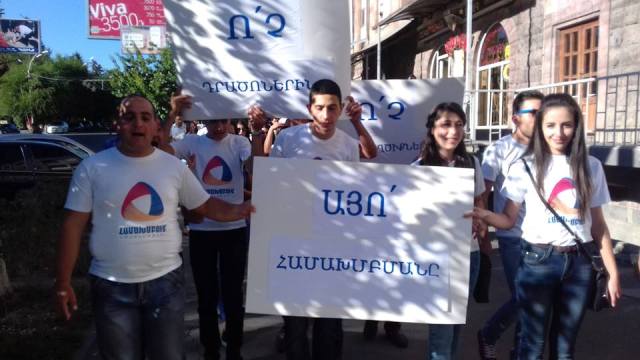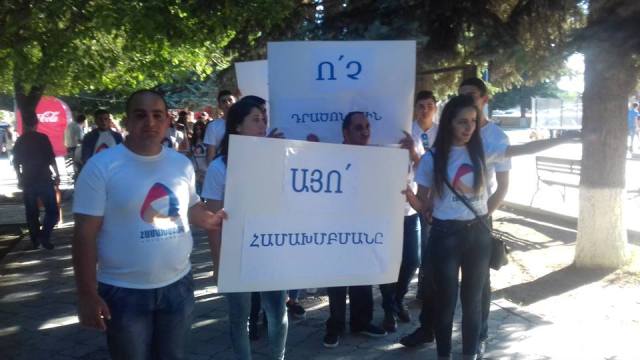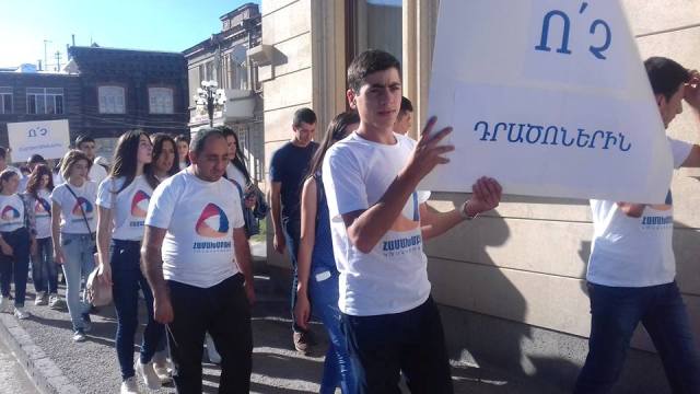 ՀԱՄԱԽՄԲՈՒՄ կուսակցության Գյումրու տարածքային կառույցի երիտասարդական թևը քաղաքի կենտրոնական հատվածում կազմակերպել էր երթ՝ «Ո՛չ դրածոներին, ո՛չ ընտրակեղծիքներին, այո՛ համախմբմանը» խորագրով: