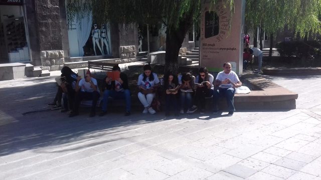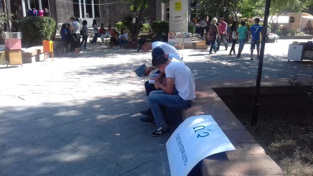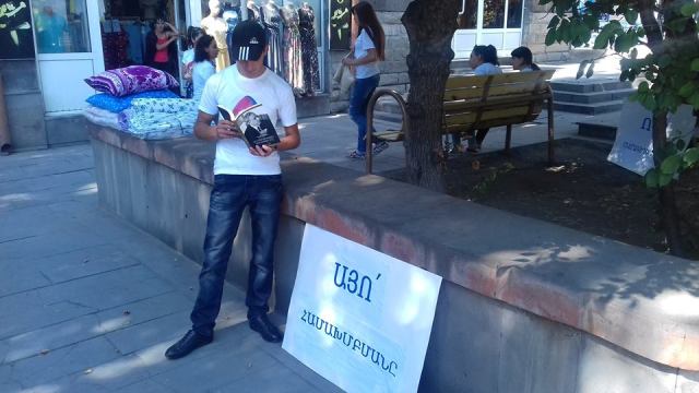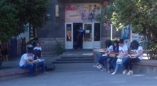 Այսօր երիտասարդները կազմակերպել էին բացօթյա ընթերցանություն՝ Ռիժկովի ճեմափողոցում: