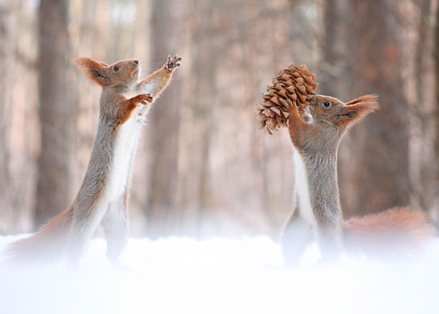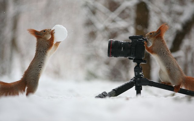 «boredpanda»–ի փոխանցմամբ՝ լուսանկարներում կենդանիները պայքարում են ուտելիքի համար, որը լուսանկարիչը թողել է փոքրիկ բացատում, որպեսզի կարողանա լուսանկարել սկյուռներին։