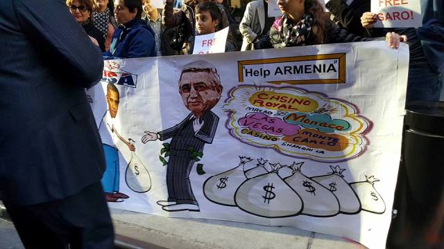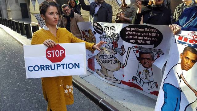 Աշխատանքային այցով Նյու Յորք մեկնած Սերժ Սարգսյանը ջերմ ընդունելության չի արժանացել։ Տեղի մի խումբ հայեր քննադատել են նրան ցուցապաստառներով ու ծաղրանկարներով՝ վերնագրված՝ «Վերջ կոռուպցիային», «Դուք ընտրված նախագահ չեք», «Las Vegas, Monte Karlo, Casino Royal, հelp Armenia»։