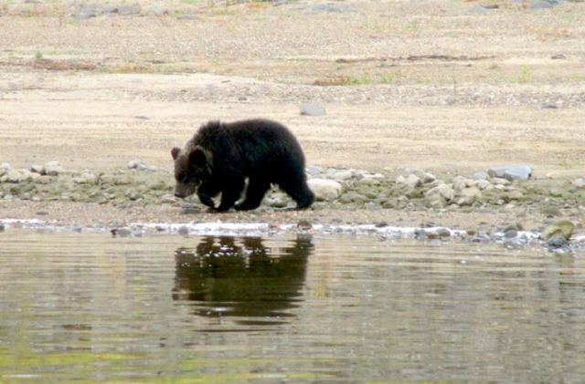 Մայր արջուկը բերել էր իր ձագուկներին Ենիսեյի ափի մոտ և ձագուկներից բաժանվելուց հետո լողալով անցել էր մյուս ափը։ Արջը վստահ է եղել, որ այդ տարիքում ձագուկները բավականաչափ վստահ չեն իրենց ուժերում, որպեսզի լողան մայրիկի հետևից։ Այդկերպ նրանք հավերժ կկորցնեն մայրկի բույրը։