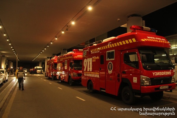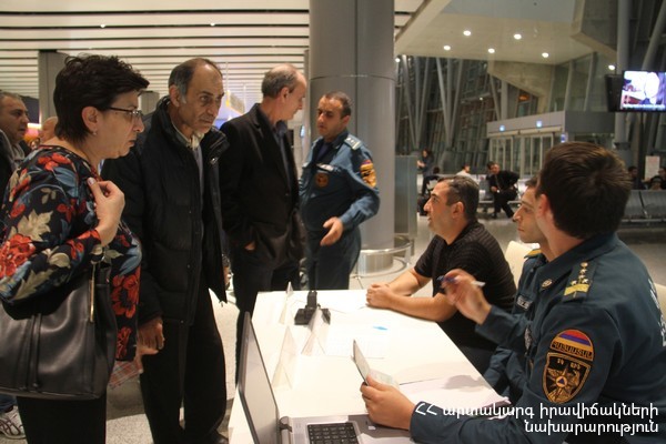 ՀՀ ԱԻ նախարար Ա. Երիցյանի կարգադրությամբ` Երևանի «Զվարթնոց» միջազգային օդանավակայանում սահմանվել էր ՀՀ ԱԻՆ ՓԾ ղեկավար կազմի և աշխատակիցների հերթապահություն, ծավալվել էին ԱԻՆ բժշկական, հոգեբանական և տեղեկատվական ծառայությունների արձագանքման կետեր, և ժամանող ՀՀ քաղաքացիներին տեղում ցուցաբերվում էր համապատասխան օգնություն: