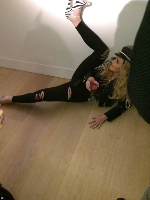 Փոփ թագուհուն լուսանկարել են գետնին՝ կիսապառկած վիճակում՝ ոտքը վերև բարձրացրած և գինու բաժակով։ Այս մասին հայտնում է «Soulpost.ru» կայքը։
