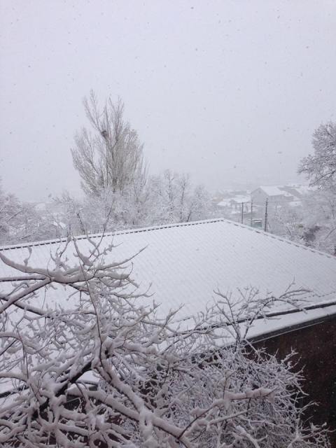 Այս պահին Վնասվածքաբանության և օրթոպեդիայի գիտական կենտրոնի պատշգամբից։ Նորք–Մարաշը ձյան մեջ է։