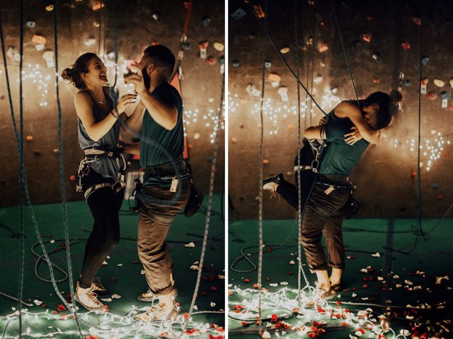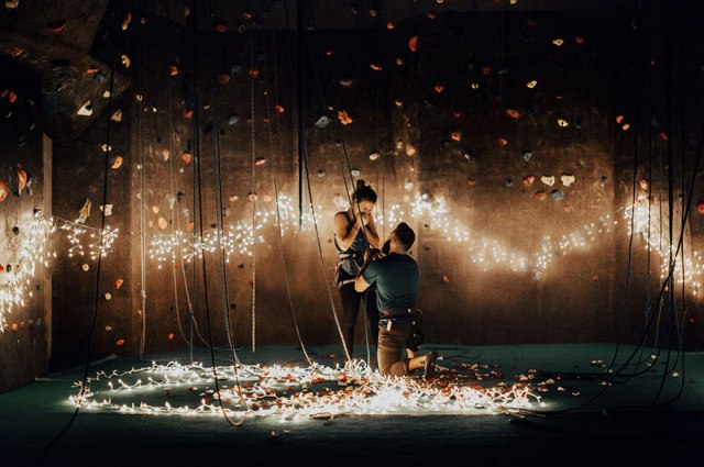 Ալպինիստ Լուիս Քարդոնը վերջերս ամուսնության առաջարկություն է արել իր ընկերուհուն, որը ցնցել է ամբողջ համացանցը։ Նա այդ ամենն արել է մարզասրահում։ Լուսանկարչի օգնությամբ նրանք մի ծրագիր են մշակել։ Մինչ ընկերուհին՝ Մեդի Սորփը, վերևում է եղել, Լուիսի ընկերները հայտնվել են ներքևում, անջատել լույսը, արագորեն զարդարել մարզադահլիճը վարդի թերթիկներով և լույսերով։ Սկզբում Մեդին վախեցել է, երբ պարաններով ցած է իջել, իսկ երբ հասկացել է, թե ինչ է կատարվում, սկսել է լաց լինել։