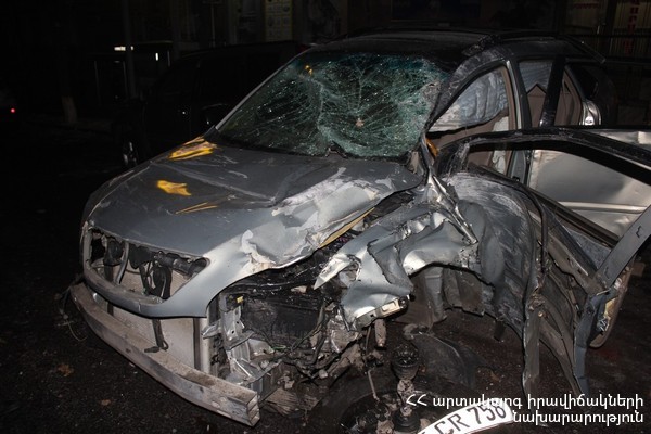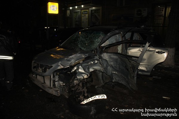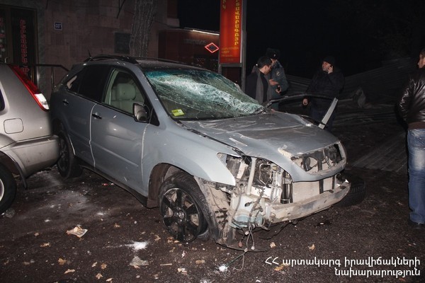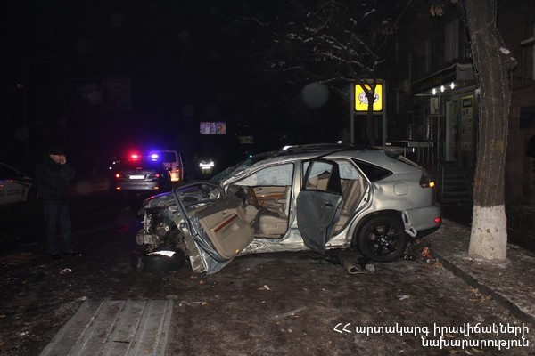 Դեկտեմբերի 25-ին, ժամը 05.27-ին ԱԻՆ-ում տեղեկություն է ստացվել, որ Երևանի Բաղրամյան պողոտայի թիվ 33ա շենքի մոտակայքում տեղի է ունեցել ՃՏՊ. «Lexus» մակնիշի 35 CR 758 պետհամարանիշով ավտոմեքենան (վարորդ` 1991 թ. ծնված Ա. Բ.) դուրս է եկել ճանապարհի երթևեկելի հատվածից, բախվել նորակառույցի շինհրապարակի թիթեղյա պարսպին և մոտ 30 մ վնասելով այն` կրկին հայտնվել երթևեկելի հատվածում: