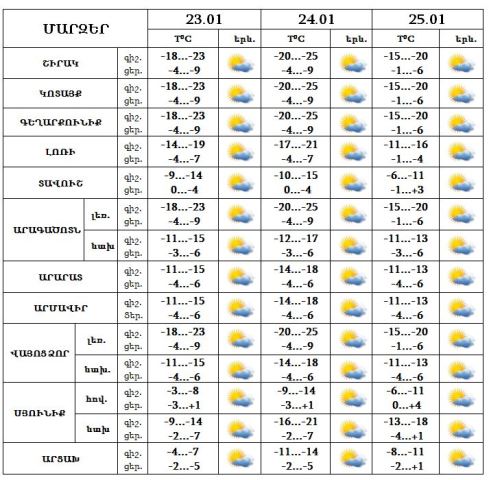 23-25-ը սպասվում է առանց տեղումների եղանակ: