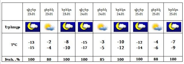 Առաջիկա 3 օրվա եղանակի կանխատեսում