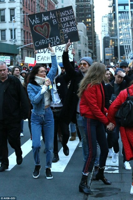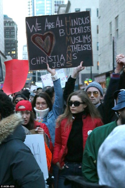 Հայտնի Բելլա և Ջիջի Հադիդ քույրերը միացել են Նյու Յորքում տեղի ունեցող ցույցերին, որոնք անցկացվում են ԱՄՆ նախագահ Դոնալդ Թրամփի՝ փախստականների մուտքը սահմանափակող նոր հրամանի դեմ։ Այս մասին հայտնում է «The Daily Mail»–ը։