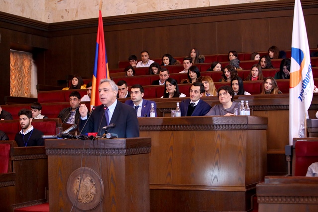 Ինչպես տեղեկացրել էինք, փետրվարի 9-ին ՀՀ կառավարության նիստերի դահլիճում տեղի է ունեցել ՀԱՄԱԽՄԲՈՒՄ կուսակցության երիտասարդական միության հիմնադիր համագումարը։ Ելույթ են ունեցել ՀԱՄԱԽՄԲՈՒՄ կուսակցության նախագահ Վարդան Օսկանյանը, կուսակցության խորհրդի համակարգող Անդրանիկ Թևանյանը, «Ազատամարտիկների դաշինքի» խորհրդի անդամ Սմբատ Հակոբյանը և երիտասարդական միության անդամներ։