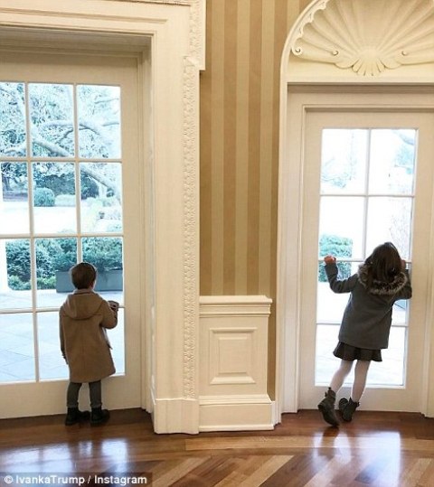 Իվանկան նաև «Instagram»–ի իր էջում հրապարակել է 2 լուսանկար, որտեղ երևում է, թե ինչպես են Արաբելլան և Ժոսեֆը նայում Սպիտակ տան պատուհանից՝ սպասելով իրենց պապիկին։