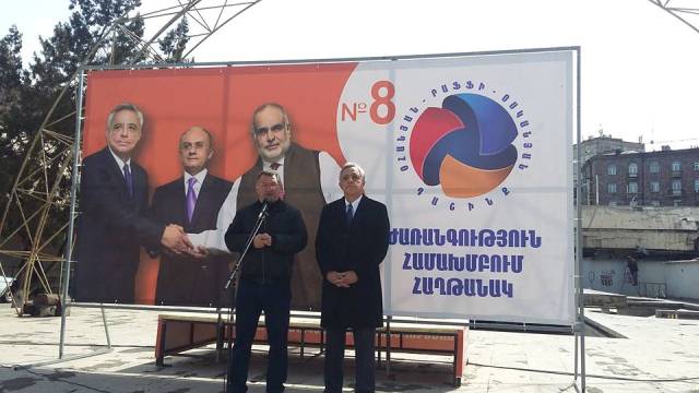 Շենգավիթից դաշինքի անդամները, ցուցակի առաջին եռյակի՝ գեներալ–գնդապետ Սեյրան Օհանյանի, «Ժառանգություն» կուսակցության փոխնախագահ Արմեն Մարտիրոսյանի և ՀԱՄԱԽՄԲՈՒՄ կուսակցության նախագահ Վարդան Օսկանյանի գլխավորությամբ, այցելել են Մալաթիա–Սեբաստիա, որտեղի բնակիչներին նույնպես ներկայացվել են դաշինքի նախընտրական ծրագրի որոշ դրույթներ։