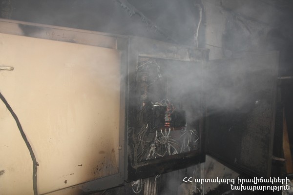 Պարզվել է, որ 6-րդ հարկում գտնվող դեղատան պահեստում այրվում են էլ. վահանակ, էլ. մալուխ (մոտ 6 գմ) և կենցաղային իրեր (մոտ 2 քմ):