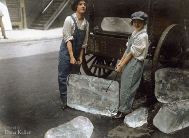 Երիտասարդ կանայք քարշ են տալիս սառույցի կտորներ