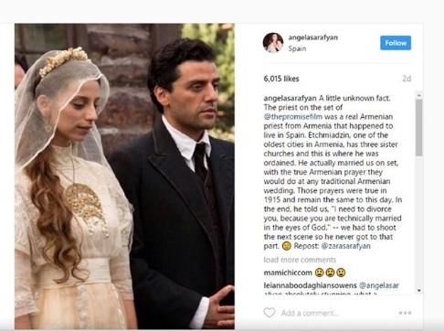 Օսկարակիր ռեժիսոր Թերրի Ջորջի՝ Հայոց ցեղասպանության մասին պատմող «Խոստումը» ֆիլմում Մարալին մարմնավորած դերասանուհի Անժելա Սարաֆյանը «Instagram»-ի իր էջում նոր փաստեր է ներկայացրել ֆիլմի նկարահանումներից:
