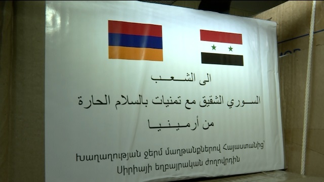 Մարդասիրական օգնությունը Սիրիա է ուղարկվել Ռուսաստանի Դաշնության ռազմաօդային ուժերի Իլ-76 ինքնաթիռով: Բեռների վրա մակագրված է. «Խաղաղության ջերմ մաղթանքներով Հայաստանից` Սիրիայի եղբայրական ժողովրդին»։