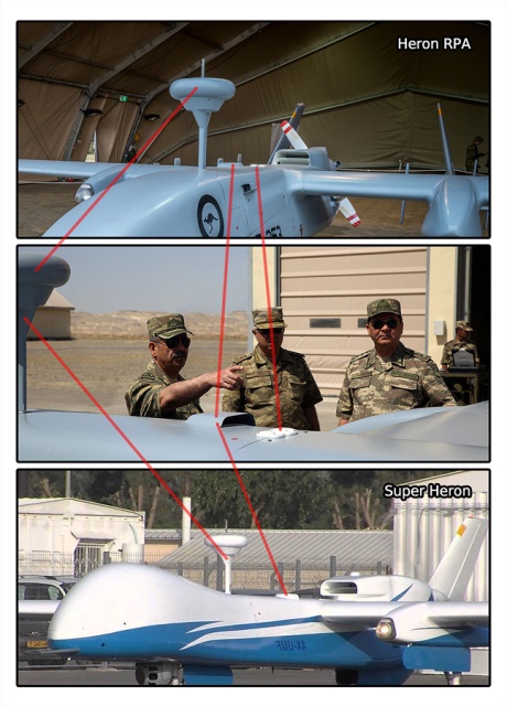 Ադրբեջանի պաշտպանության նախարարի այցի վերաբերյալ հրապարակմանը կից լուսանկարում պատկերված սարքը որոշակի նմանություններ ունի իսրայելական Heron սարքի միանգամից երկու տարբերակի՝ Heron RPA և Super Heron: