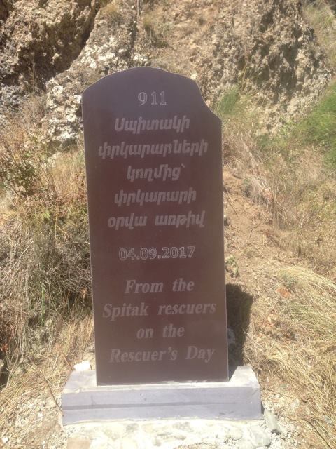 Այս գերեզմանաքար հիշեցնող քարը «Թռչկանի» ջրվեժի մոտ «Փրկարարի օրվա» առթիվ տեղակայել են ԱԻՆ-ի աշխատակիցները: Ու զարմանք է հարուցում, որ Սպիտակի ԱԻՆ-ի աշխատկիցներից ոչ մեկը չի ասել՝ «իիիիմա՜ստը»: Պատկերացնո՞ւմ եք՝ վաղը, մյուս օրը, ասենք, Ուսուցչի օրվա առթիվ մի հատ էսպիսի քար դրվի Սպիտակի ուսուցիչների կողմից, իսկ էն մյուս օրը Ոստիկանի օրվա առթիվ՝ Սպիտակի ոստիկանների կողմից, և այսպես շարունակ՝ յուրաքանչյուր մասնագիտություն որոշի այսպես «նշել» իր մասնագիտական տոնը՝ ստեղծելով, մեղմ ասած, անբնաներդաշնակ վիճակ բնության հուշարձանի մոտ: