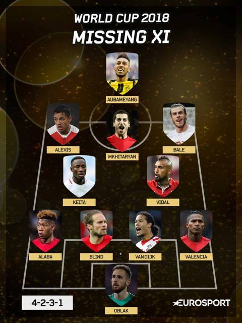 «Eurosport»-ը կազմել է խորհրդանշական հավաքական, որտեղ ընդգրկել է այն ֆուտբոլիստներին, ովքեր բաց կթողնեն Աշխարհի 2018թ. առաջնությունը: