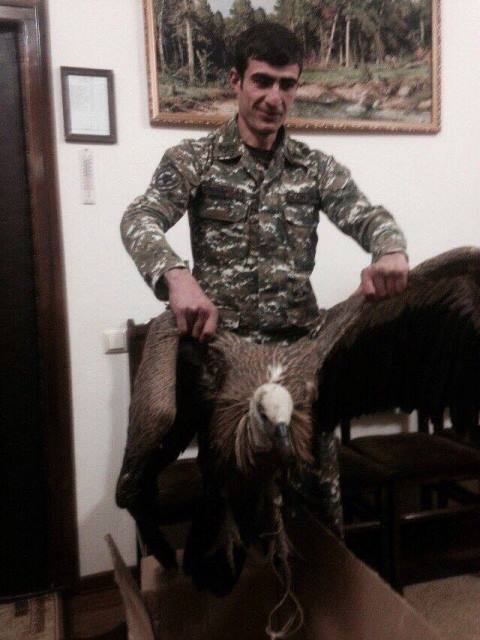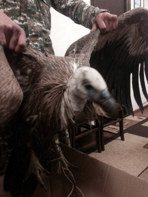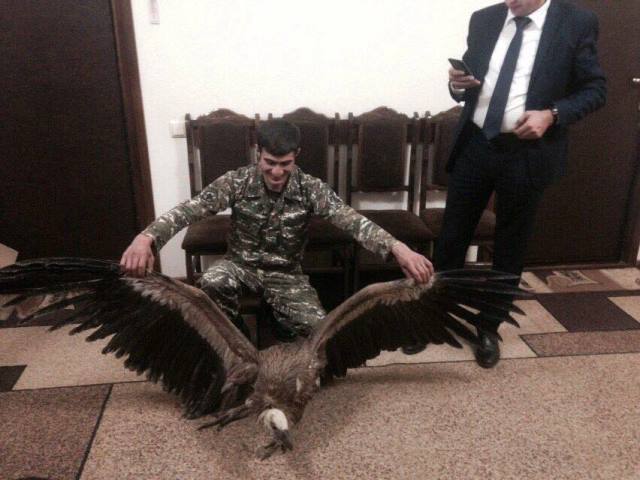 «Այսօր՝ ժամը 18:00-ի սահմաններում, Տավուշի մարզի Նավուր գյուղի Եղիշավան կոչվող տարածքում ծառայության ժամանակ ՀՀ ՊՆ ՌՈ զինծառայողները հայտնաբերել են վնասված սպիտակագլուխ անգղ: Զինծառայողները անգղին տեղափոխել են զորամասի տարածք, խնամել են, կերակրել այնուհետև վերադաս հրամանատարության մջոցով կապնվել են բնապահպանության նախարարության ներկայացուցիչների հետ: Այժմ սպիտակագլուխ անգղին տեղափոխել են մասնագիտացված տարածք համապատասխան վերահսկողության տակ»:
