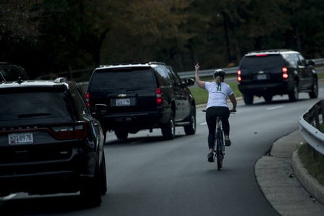 Ամերիկուհուն հեռացրել են աշխատանքից Թրամփի ավտոշարասյանը միջնամատ ցույց տալու համար (լուսանկար)