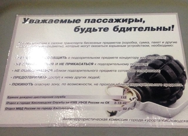 Աշխարհը մի տեսակ ահաբեկչական սպառնալիքի տակ է: Հնդկաստանում մետրո նստելիս մետաղորսիչով զննում էիր անցնում, որ ռումբ չանցկացնես: Գերմանիայում անմիջապես մոտենում էին մի պահ անտեր թողված պայուսակիդ: Ռուսական հատուկ ծառայություններն էլ զգուշացնում են, որ հանկարծ չփորձել ինքնուրույն վնասազերծել պայթուցիկը, այլ իրենց տեղյակ պահել: