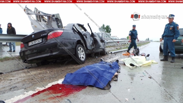 Ինչպես դեպքի վայրից հայտնում է ֆոտոլրագրող Գագիկ Շամշյանը, վթարի հետևանքով 2 հոգի տեղում մահացել են, 1 հոգի ծայրահեղ ծանր ախտորոշմամբ տեղափոխվել է Մասիսի բժշկական կենտրոն։ Ֆոտոլրագրողը հայտնում է, որ BMW-ի՝ երկաթբետոնե արգելապատնեշներին բախվելու հետևանքով երկաթե արգելապատնեշներից մի քանիսը շպրտվել են հանդիպակաց երթևեկելի գոտի և վնասել դեպի Երևան ընթացող վարորդի Opel-ը։ Բարեբախտաբար, Opel-ի վարորդի ճիշտ կողմնորոշվելու արդյունքում նա չի բախվել մեկ այլ ավտոմեքենայի։