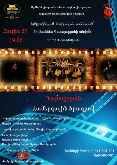 Երկրագնդում հայկական ամենամեծ՝ Հովհաննես Գասպարյանի անվան պարի ակադեմիան կրկին կուրախացնի Երևանյան հանդիսատեսին իր խիտ համերգային ծրագրով: Հուլիսի 27-ին Օպերային թատրոնի բեմը կլցվի ակադեմիայի հարյուրավոր սաներով ՝ նոր ու բազմաժանր «Դարաշրջան» ծրագրով: