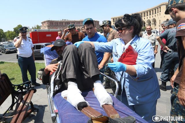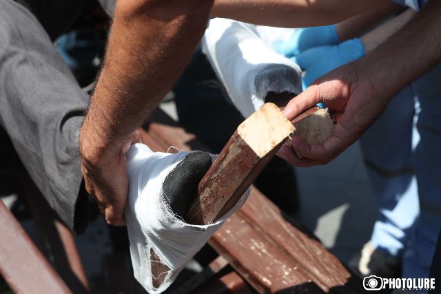 Հանրապետության հրապարակում քաղաքացին ոտքերը մեխել է նստարանին (տեսանյութ, ֆոտոշարք)