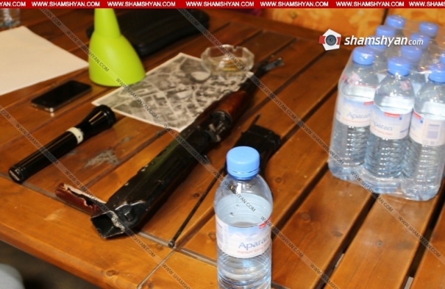 Դեպքի վայրի զննությամբ տան բակից հայտնաբերվել է 16 հատ 7,62 տ/չ պարկուճ, «ԱԿՄ» տիպի ինքնաձիգ, սպորտային պայուսակ, որի մեջ եղել է կպչուն ժապավեն և լինգ: