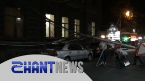 Հանրապետության փողոցում էլեկտրասյունը շրջվել է մեքենայի վրա