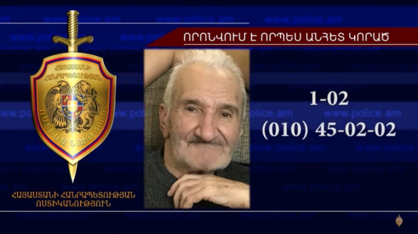 Որպես անհետ կորած որոնվում է 85-ամյա տղամարդ