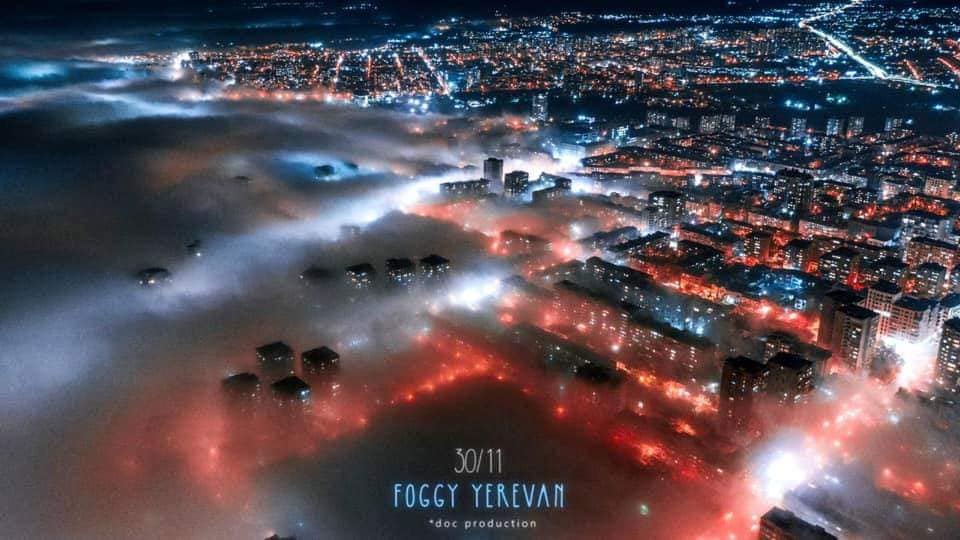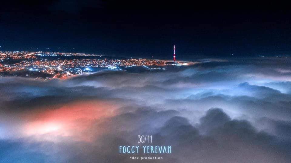 «Երևանի երեկվա մառախուղը մոտ 1 կմ բարձրությունից։ Շնորհակալություն Սուրեն Սարգսյանին նման ֆանտաստիկ սիրուն ֆոտոներ անելու համար»,–գրել է նա։