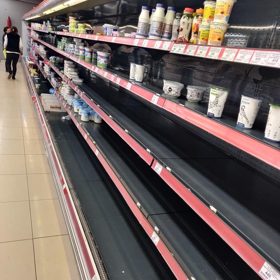Երևանի մի շարք խանութների որոշ ցուցափեղկեր կիսադատարկ են. կորոնավիրուսի պատճառով մարդիկ մեծ քանակի սնունդ են գնում (լուսանկարներ)