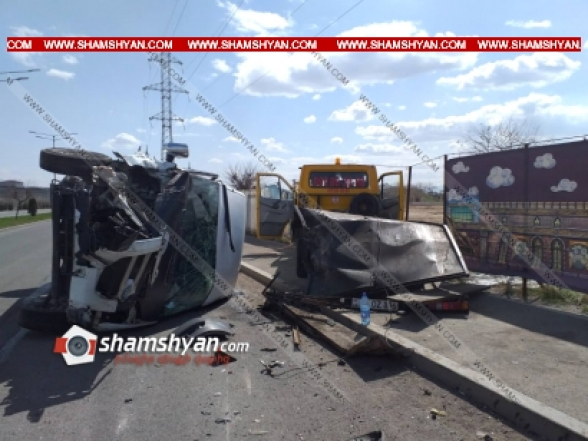 Երևանում. Ford Transit-ը բախվել է կայանված Mercedes քարշակին և կողաշրջվել