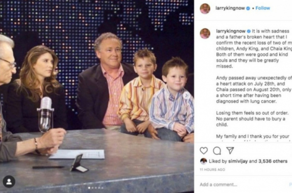 Ամերիկացի հայտնի հեռուստառադիոհաղորդավար Լարի Քինգը հայտնել է, որ մի քանի շաբաթվա ընթացքում մահացել են իր երկու երեխաները: Այդ մասին նա գրել է ինստագրամյան իր էջում: