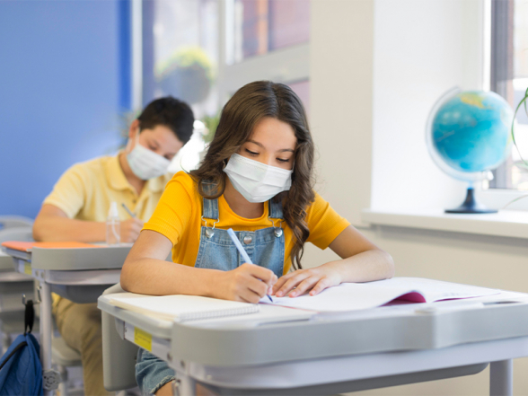 Դասասենյակում սովորողները կրում են դիմակներ։