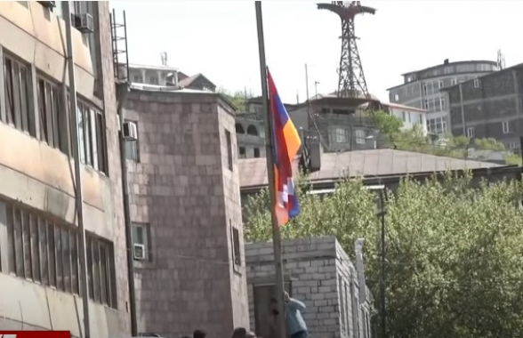 Բժշկական համալսարանի բակում տեղադրվում է Արցախի դրոշը (տեսանյութ)