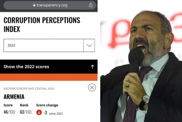 180 երկրների ցանկում մենք կոռուպցիայի ընկալման ինդեքսով 63–րդ տեղում ենք։ Մինդեռ 2021–ին 58–րդ տեղում էինք։ Այսինքն՝ նիկոլենք իրենք իրենց են գերազանցել կոռուպցիայի մասով։