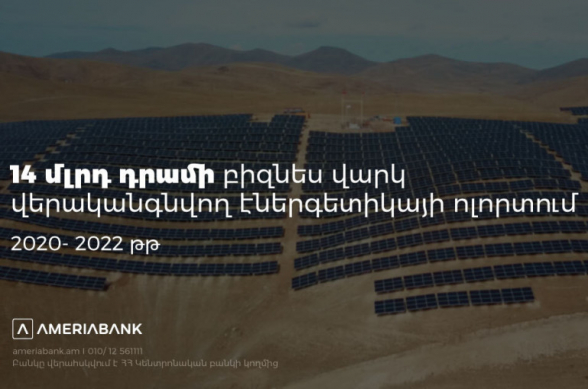 Ամերիաբանկն ավելի քան 14 մլրդ դրամի բիզնես վարկ է տրամադրել վերականգնվող էներգետիկայի ոլորտում (տեսանյութ)
