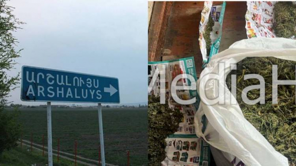 Դեպքի վայր ժամանակ քրեական հետախույզները Արտյոմ Սարգսյանին պատկանող Արշալույսի տնամերձ հողամասին կից շինություններում, տեսանելի հատվածից, հայտնաբերել են թղթե փաթեթներ՝ 3․41գ․, 13․16գ․, 36․39 գ․ և պոլիէթիլենային փաթեթ՝ 550 գրամ մանրացված և չորացված դեղնականաչավուն զանգված։