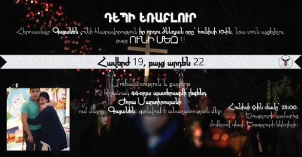 Ուստի՝ հունիսի 9-ին, ժամը՝ 23:00-ին, հրավիրում ենք Ձեզ, մասնակցելու մոմավառությամբ քայլերթի