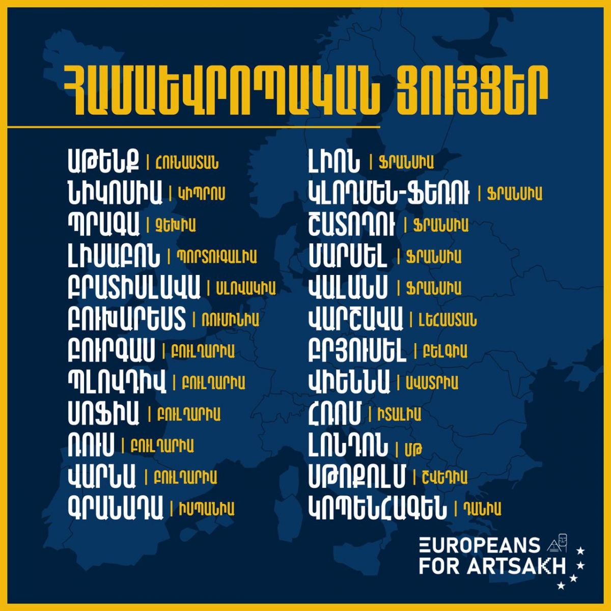 Փաշինյան-Ալիև հանդիպմանն ընդառաջ եվրոպական 20 քաղաքներում տեղի կունենան բողոքի ցույցեր (լուսանկար)